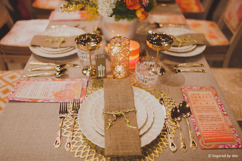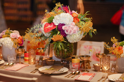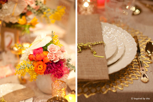 How about starting with the dinner theme? Loose words as “Beach”, “Music”, “Autumn” or even “Glitter” can be the trigger to all the decoration in that dinner. Don’t be afraid of mixing patterns and interesting textures. The natural elements can turn out to be surprising in a centerpiece bouquet or even loose flowers that you can use as a seat marker. The addition of candles to the floral arrangements is never too much. Make a pretty bouquet or many small ones, instead, and you will see that, by lighting the candles, the ambience of the room will change completely.