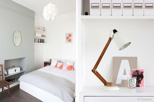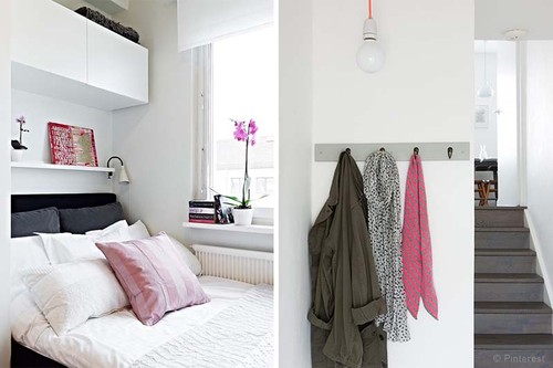 Para fazermos parecer uma área maior, as cores das paredes são fundamentais. Sendo assim, as cores mais luminosas são as que devemos adoptar, os azuis gélidos e os cremes são um exemplo. As molduras e as estantes de parede poderão estar também pintadas, dessa forma não irá parecer que estão a “ocupar espaço”. O efeito da luz natural é extremamente importante em espaços reduzidos; no entanto, caso não usufrua dessa sorte, podemos fazer jogos de luz para obter essa mais-valia. Um espaço pequeno também é sinónimo de arrumação. Quanto mais um espaço estiver desarrumado, menor irá parecer.