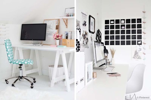 Estantes e prateleiras vão ser muito úteis tal como uma mesa ampla e uma cadeira confortável, ergonomicamente apropriada; também a luz natural é fundamental e uma área de leitura e lazer é também muito importante para os momentos de inactividade. Decore e inspire-se no seu espaço de trabalho...